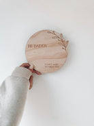 Plaque reads “Hi Daddy. I can’t wait to meet you”.